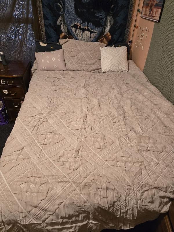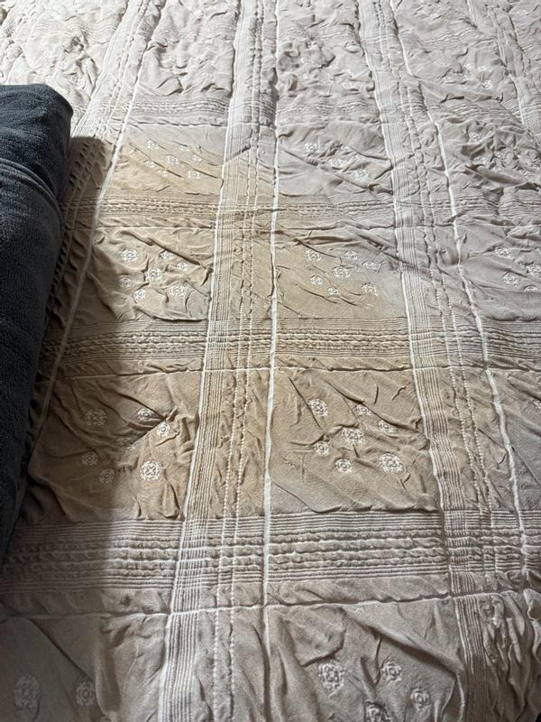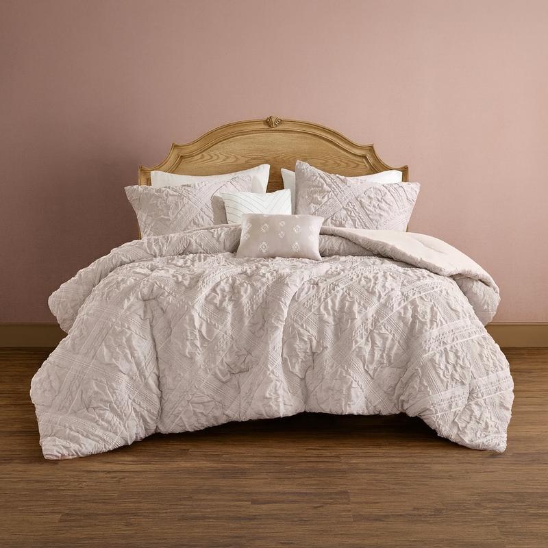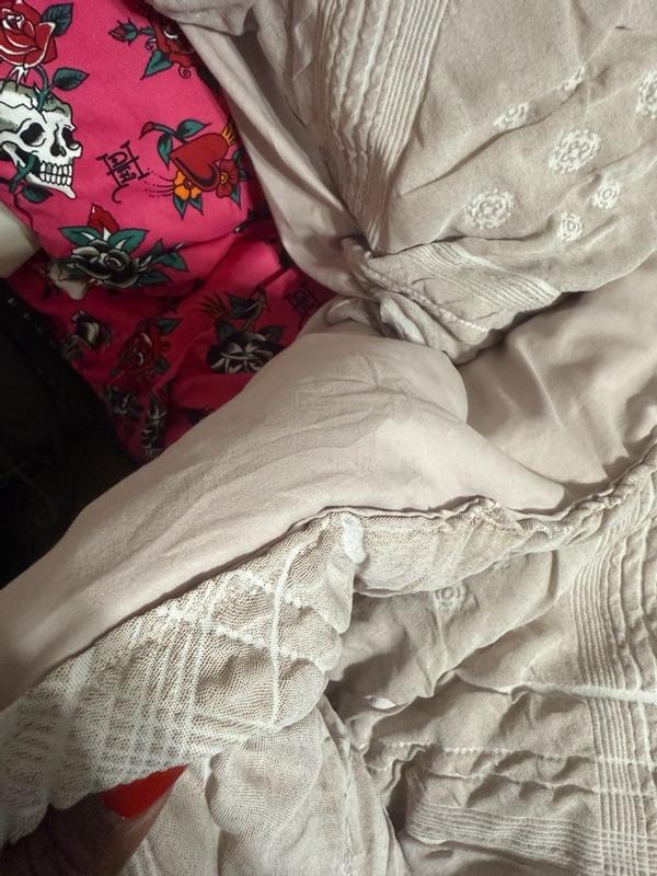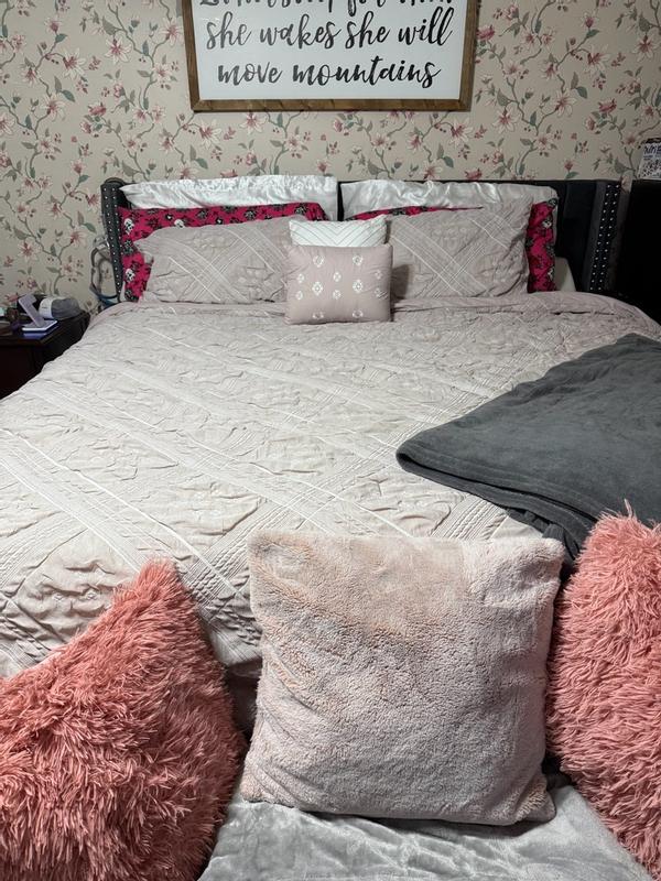 This comforter set is absolutely beautiful. The muted pink is soft, elegant, and feminine without being overpowering. What really makes it stand out to me is the texture of the material it’s a delicate almost organza like with subtle patterns all over the comforter. It instantly elevated the room. Giving it a light and airy look while still being cozy. The material feels unique, durable and high end. It’s the perfect thickness coming into the winter months, and keeps me plenty warm. I received this product complimentary for testing purposes .