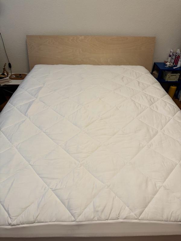 A plush, thick, and comfortable mattress pad that adds a layer of comfort to our bed. It fits our queen mattress perfectly, didn’t move around, and seems durable. Good quality for a down alternative and I like the added waterproof component to keep our mattress staying fresher for longer. Great value for the price!