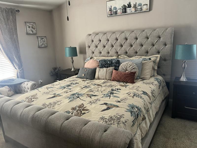 Dear customer, thank you for your feedback. We're happy to hear that the color and bird pattern suit your room perfectly, but we’re truly sorry to learn the comforter didn’t meet your expectations in terms of fit and appearance. The Madison Park Quincy comforter is crafted from 100% cotton twill, which can naturally wrinkle—especially after packaging or repeated folding. While ironing and steaming help in most cases, some customers find wrinkle-release sprays or occasional professional pressing more effective. Regarding the size, the King and Cal King comforters measure 104"W x 92"L, while the Queen size is 90"W x 90"L. For beds with wider mattress designs or no bed skirt coverage, the comforter may appear slightly undersized. We appreciate you pointing this out and will share your experience with our product team for review. Your feedback helps us improve, and we thank you again for sharing both the positives and areas for improvement.