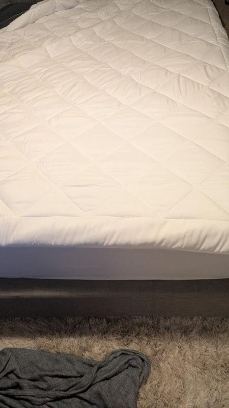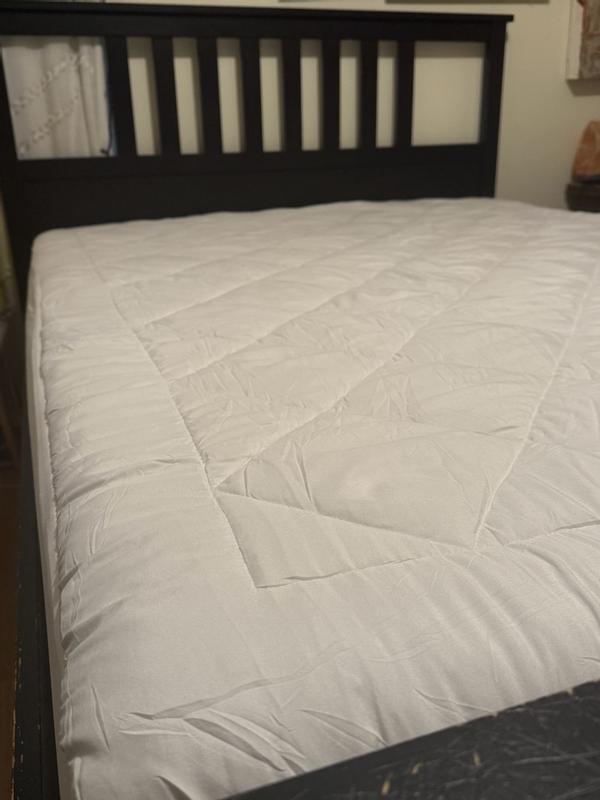 I really like this mattress cover. It has a little bit of padding so not only does it protect the mattress but it makes it more comfortable to sleep in your own bed