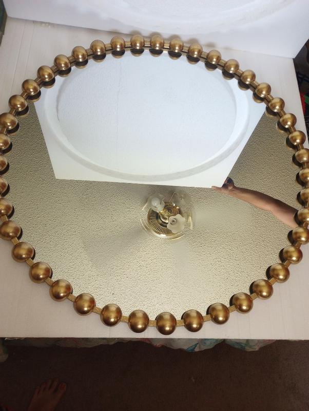 Perfect! It was wayyy bigger than I thought! I included a picture of it still in the box cuz when it arrived I was shocked! It looks so nice and works perfectly in a bedroom but is big enough to be used as a mirror in a small bathroom or even in a hallway! Very easy to install and the product doesn’t look or feel cheap at all! The gold bubbles around it seems like it could work for any design style!! Very happy with my free mirror!
