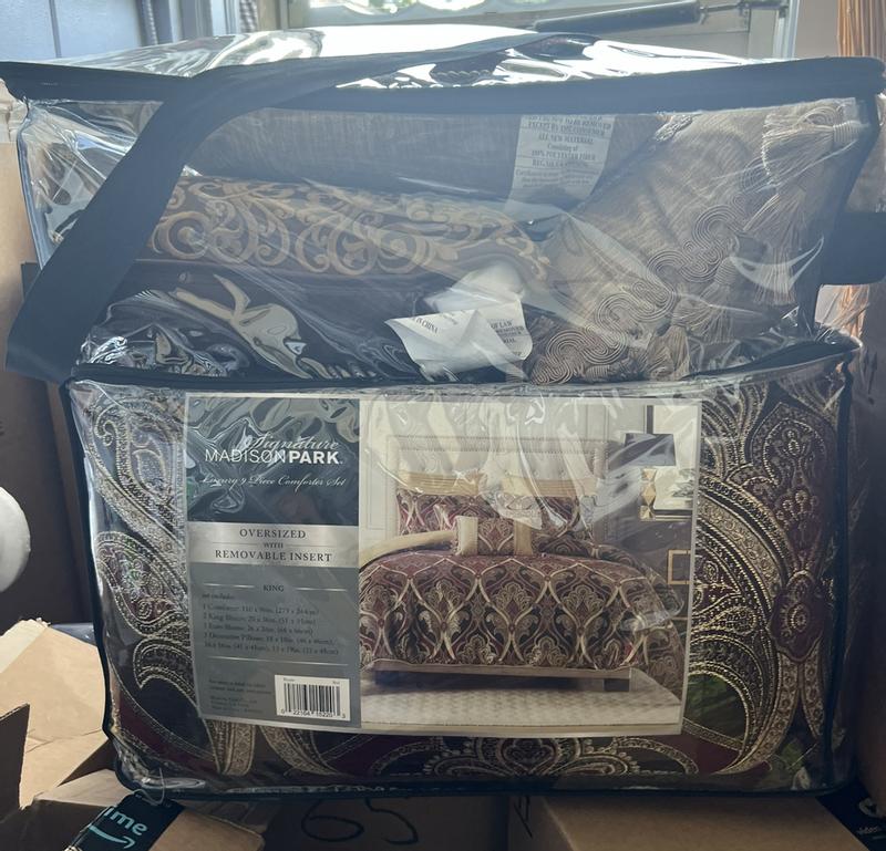 Wow! This wonderful bed comforter set is just amazing. The quality of the same is on another level. Thick fabric. Very elegant and unique style. It came very well packed and it has some weight in it that how I knew that the quality was great. Also this wonderful set comes with few different decorative pillows. Love the pattern on it. Universal colors. This size set includes 8 pieces. Great texture. Overall, love the quality and the elegance of the same. Highly recommended.