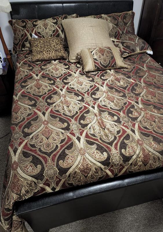 This is such a wonderful, awesome and mesmerizing set that on seriously has to experience it to understand what I am trying to say. It can't b e explained. It's such a luxurious item that I never thought I needed till I saw them in person. I just can't take my eyes off of this beauty. Wonderful comforter,awesome design, great quality, sturdy product and love the matching pillows. I would very highly recommend this product. It would make your home look heavenly and royal.
