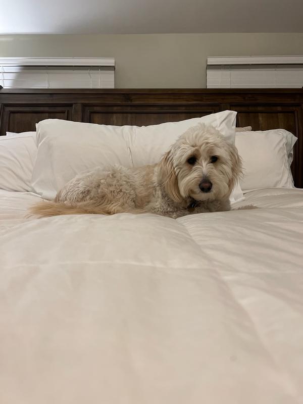 They are so soft and warm, stays on our bed as a lot will come off . We love them. ❤