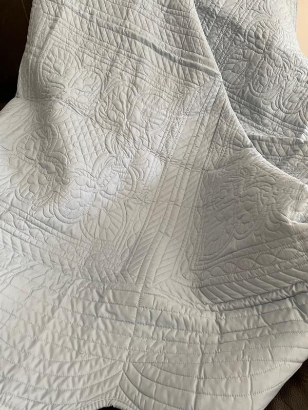 I really like this beautiful quilt. Both the color and weight are perfect for my bedroom