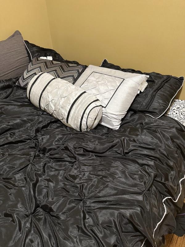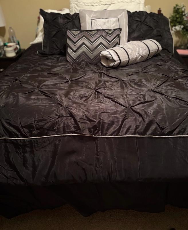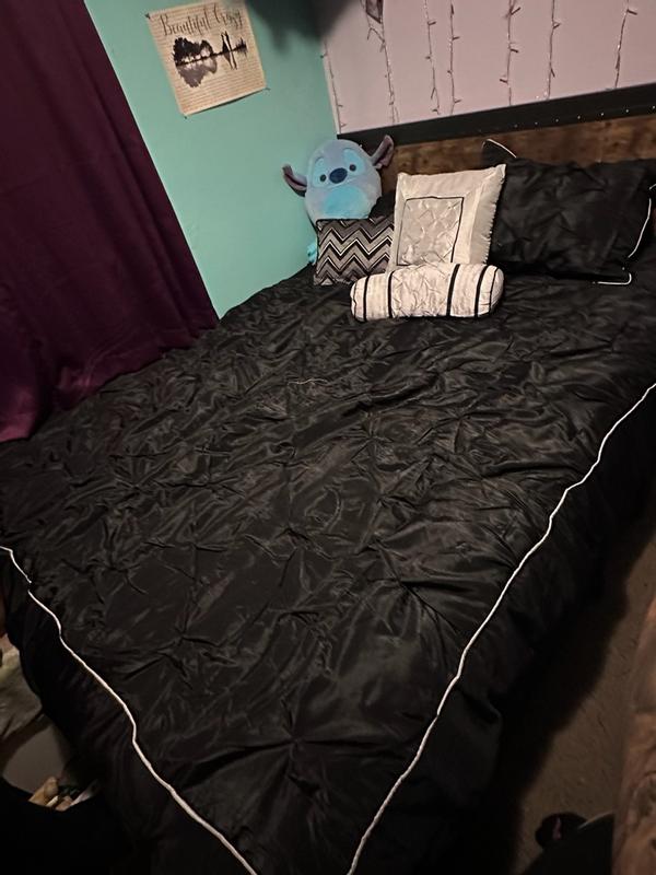 I am reviewing this Madison Park Laurel 7-piece Tufted Queen Comforter Set for Influenster! Very IMPRESSED!! It completely transformed my bedroom. The comforter is super soft and fluffy without being too heavy, and the black tones give a clean, elegant look. I love that it comes with everything — two shams, a bed skirt, and three decorative pillows that really pull the whole look together. The decorative pillows are beautiful and add that designer touch. Great quality, easy to care for, and it feels so cozy every night. I couldn’t be happier with this set!