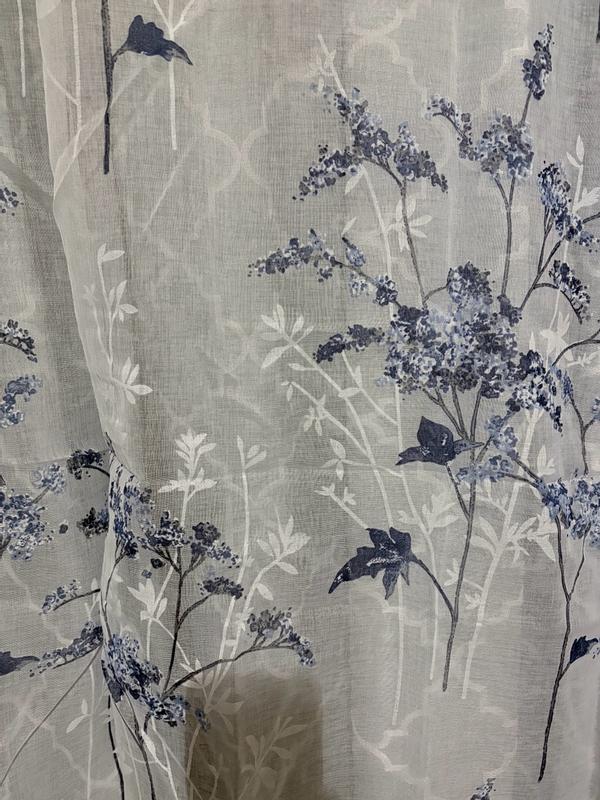 The Sun Zero No 918 Margot Botanical Print Sheer Rod Pocket Curtain Panel is very pretty, was easy to hang, and the size was perfect for my windows. The curtains have lovely shades of blue and a sparkly silver that runs through the panel. I like the curtains, though I do prefer more of a blackout level of coverage. So far, they appear to be well-made and easy to maintain.