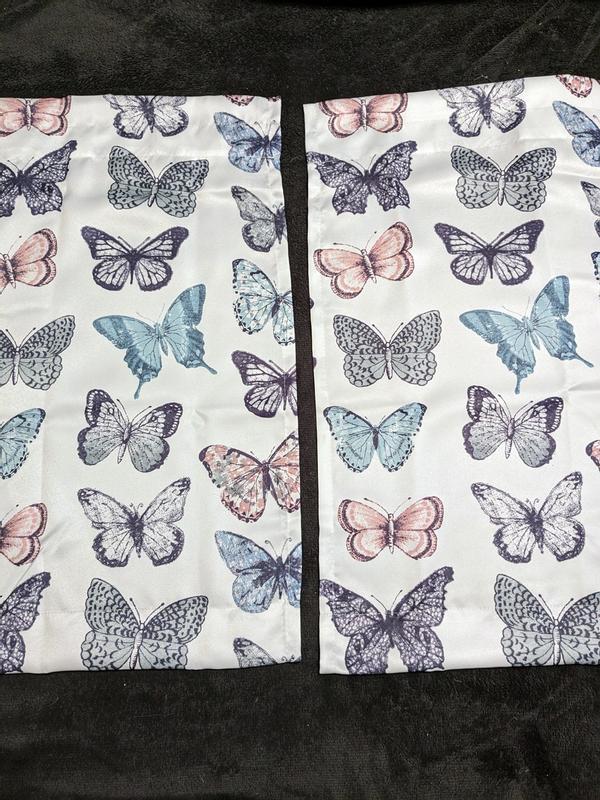 These butterfly curtains are absolutely adorable! Take any room and make it go from dull to beautiful and cheery! The butterflies look like they are fluttering right off the curtains. They are easy to just slide on the curtain rod and you are ready to roll.