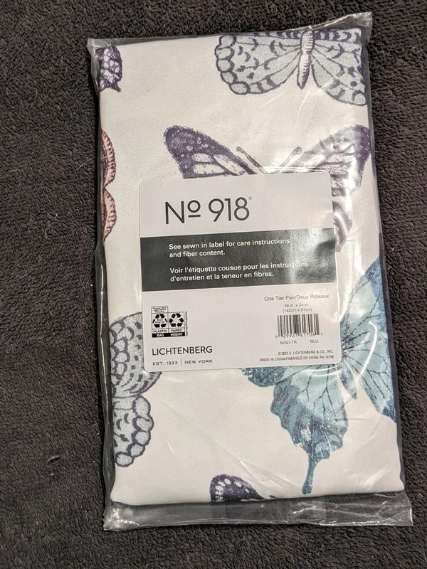 No. 918Magdalena Butterfly Print Sheer Rod Pocket Kitchen Curtain Tier Pair