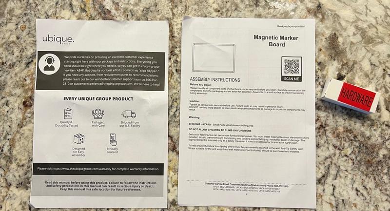 Didn’t realize how big this was lol, very lightweight though and sturdy. Instructions and hardware included. Great for school rooms, busy parents and kiddos alike. Can be used for posting paper notices, magnets are included.