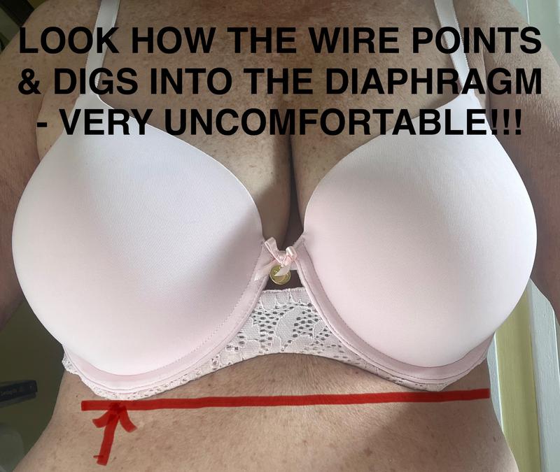 Structure of bra is designed so the pointed underwire digs into diaphragm. A wider/straight band may prevent this. More SUPPORT verses designing around push up which I could care or less about. Must be a man who thinks we should all be perky, LOL 😂 36C was right cup size, but ordered 38C to have a wider band (3 hooks/longer straps). 38C was not a C cup, it was larger. 😥 I tried to add pictures, to back up what I’m sharing but this review site didn’t work. Couldn’t.
