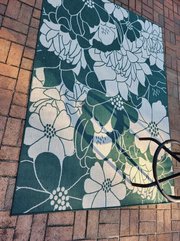 This rug is so cute and very durable! It looks great on my patio and gives it a very home like feel.