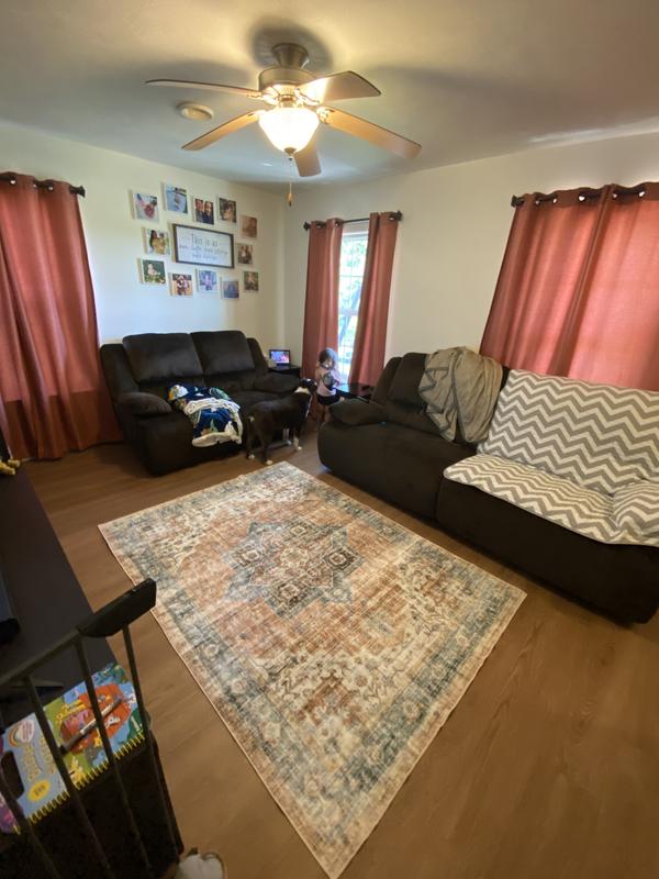 I really, really wanted to love this rug. The pattern is stunning and the size is perfect for my living room but the quality is lacking a bit. I couldn’t get it to lay flat even after 24 hours and when myself my husband or my kids walked across it we would trip or any part on it, a corner, a crease in the middle. Unfortunately it’s just not it for me and my family.
