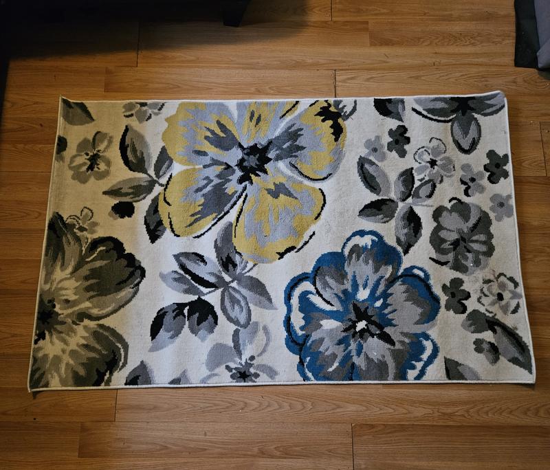 I love my new area rug from World Gallery it's the perfect size for my small living room. The modern floral design has beautiful rich colors. It's so soft and really easy to clean with just mild soap a warm water. I did have to put a sticky pad underneath to keep it from slipping around.
