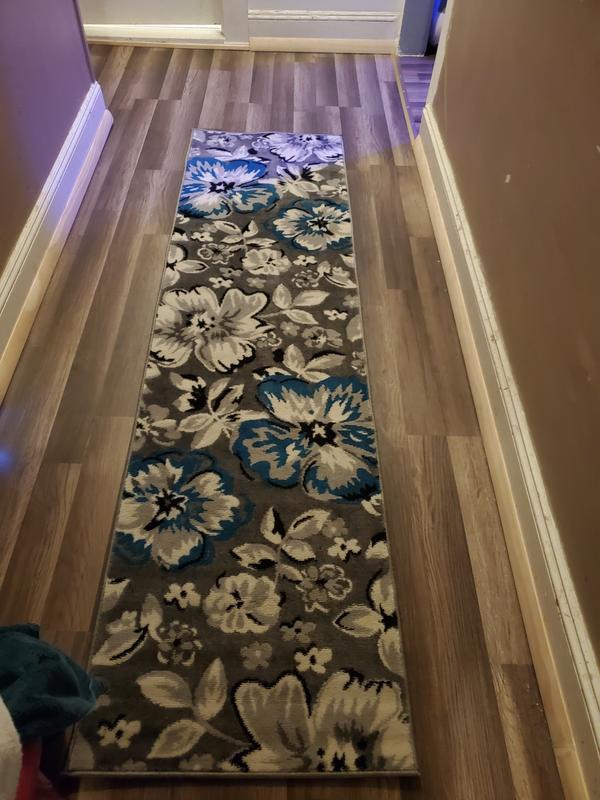 I really like the color palate. It's modern yet romantic. I live in a condo that has a narrow foyer so the 2ft by 7ft fits perfectly. I opted to give this product 4 stars for the following reason.... the rug wrinkles up and never lays 100% flat without several rug grips. The backing of the rug seems to be the cause of that issue. When you first unroll it, it does takes some time to "relax". Overall I like the appearance and size of the runner. I just wish it layed a bit more flat without bunching or wrinkles.