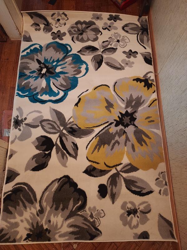 I love my new area rug from World Gallery it's the perfect size for my small living room. The modern floral design has beautiful rich colors. It's so soft and really easy to clean with just mild soap a warm water. I did have to put a sticky pad underneath to keep it from slipping around.