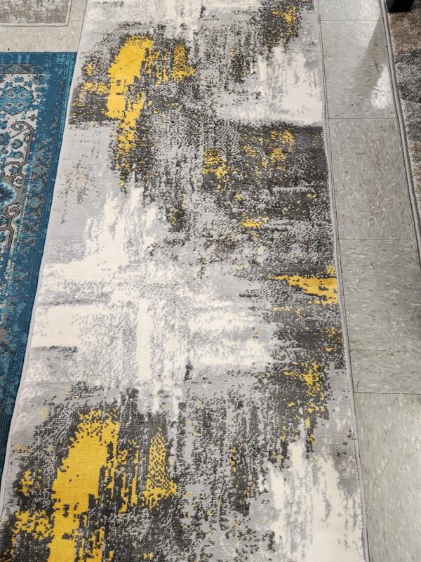I got this 2'x7' World Rug Gallery bari contemporary abstract art area rug a couple weeks ago and fell in love with it the moment I laid it out.It's very well made an is sure to last a long time.I have some slate tile floor which that I put the rug over and it really made the rug stick out.It's sure to draw attention and be a focal point in any room or floor you put it in.