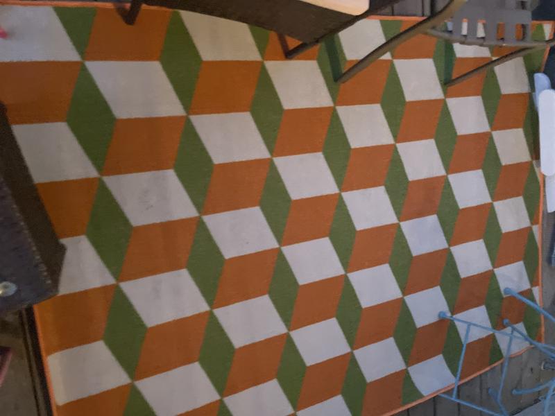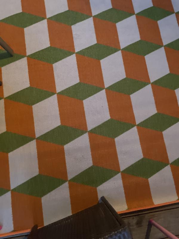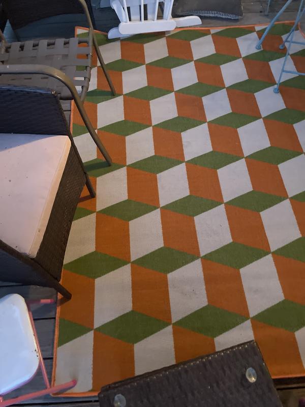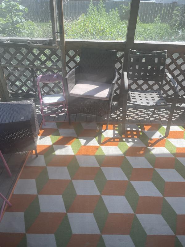 The World Rug Gallery outdoor rug is perfect for my sunroom. The 2x7 runner is just the right size for my sliding doors and looks great. I love the orange geometric design, it goes with my boho style. I’m very happy!