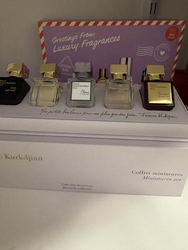 This was a great mini set- I mainly purchased it for the BR540, but the bottles don’t have sprays— and it’s such a rich perfume I just felt like I was wasting it on my fingers trying to disperse it evenly on my skin and lightly on my clothes while getting it to not stain my clothes- but I love the way my clothes smell when it’s sprayed on though so I felt irritated and that it wasn’t what I expected! I also did not like 3 out of the 5 fragrances at all. So, I did returned it. I also felt the BR 540 didn’t smell the same as the one I smelled in the store and I feel like it has to do with the way it’s dispersed through the spray vs out of the bottle, dabbing it on your skin. It did not feel as long lasting, but what I’ve sprayed on my clothes at the mall still smells so beautiful almost a week later or a decent amount of time later. Idk it’s not the same as the regular bottle I would steer clear of this set!