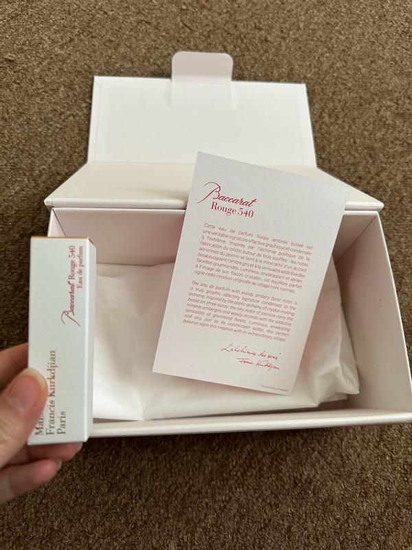 This is my very first time trying any perfume from Maison Francis Kurkdijan and it's Baccarat Rouge 540 eau du perfume. I've been using this for the past couple of weeks and I can confidently say it is now my favourite fragrance. I had lots of compliments from friends and family since wearing this . The scent is unique, luxurious, and long-lasting. The smell isn't over powering but I can still smell it on my clothes even on next day . The packaging is also very classic and luxurious. It's a classy woody smell with the hint of amber , jasmine floral notes. You can wear it as a day to day scent and it's also perfect for special occasions and events. This perfume is absolutely gorgeous and would highly recommend.