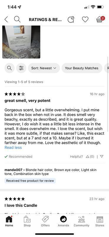 It smells literally like you are on the beach… I love their perfumes but I wish they lasted as much as their candles smell 100/10 price tag a bit too much for a candle so more on the expensive side so not a great value for money