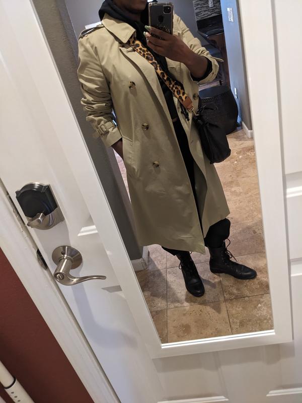 I am so happy I got this. It's perfect length for a petite like me @5'. I think I might get the green one as well..This trench is so sexy, and elegant.