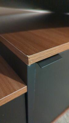 - Includes 3 concealed shelves spaces with 2 - 90 degrees open door and 1 center pull down door