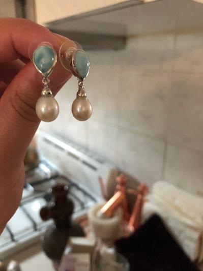 These are beautiful earrings. The larimar stone and pearls are beautiful . These earrings can be worn everyday or on special occasions. They will be noticed!