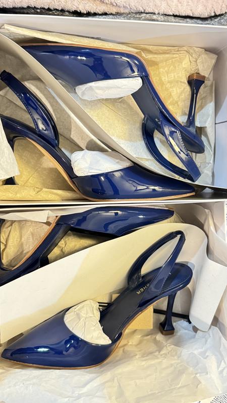 Although the heels are only 3.35", I bought these shoes as they are gorgeous. I usually wear 4" heels. I purchased them in the Nero Patent, Cobalt, Snake & White Floral Print. They are comfortable; however, after 1 or 2 wears, the back heel strap started sliding down my heel. I had to stop and push it up every few steps. I don't have narrow heels and have never experienced this issue before. I even took one pair to a shoe repair and had the back elastic shortened. After a few wears, the problem resurfaced. As I was well past the return window when it was clear that I was not going to solve this issue, I will be donating all 4 pairs. I hope the recipient(s) don't have the same experience. My fault for ignoring the reviews that commented on this problem. The good news is that at least they were on sale.