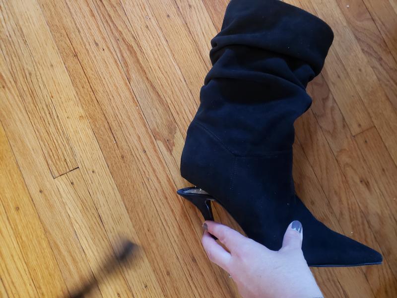 I was worried about buying pointy toed shoes but these are so comfortable! The top is perfect around my leg (not too big).
