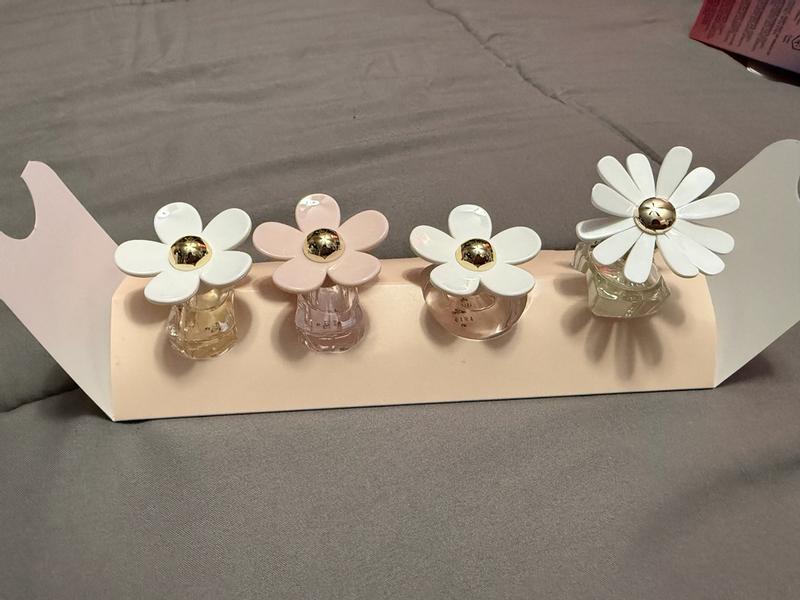 The idea behind this mini bundle is great, however the packaging needs to be better. The top for Daisy Love fell off in transit and some of the perfume leaked in the package. When trying to use Daisy Wild, the flower popped off of the actual top to the perfume. As for the perfumes themselves Daisy is iconic as ever and my favorite is Daisy love.