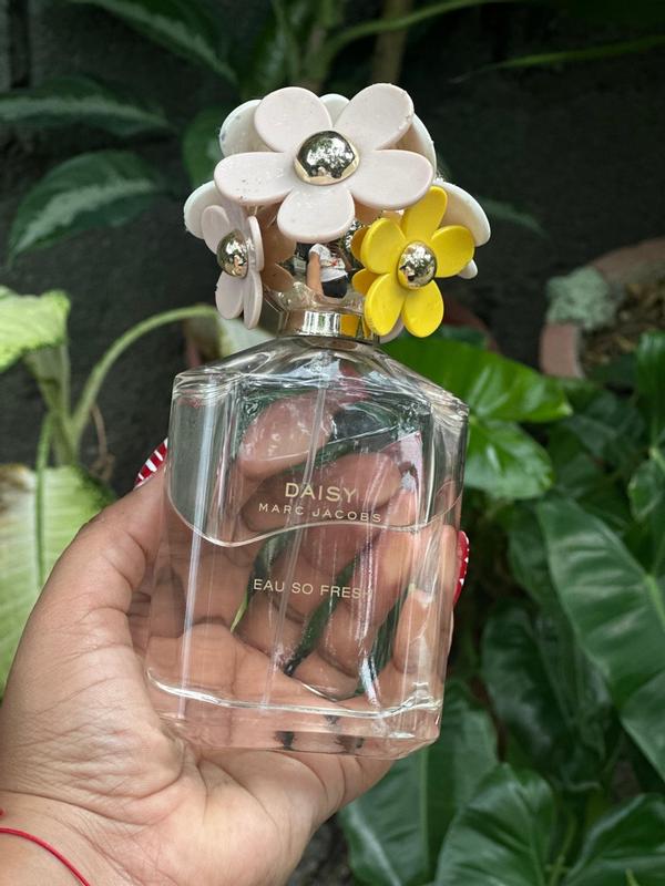 Sophisticated but not too serious, Daisy Eau So Fresh sparkles with a sunny, vibrant energy. A spirited incarnation of the original Daisy, this fragrance excites the senses with a bright elegance and whimsical charm. Like the woman who wears it, Daisy Eau So Fresh inspires us to be bold and feminine, sweet and unpredictable. The scent's enticing top notes of raspberry and grapefruit sparkle on the skin like sunshine, deepening into a sensuous heart of wild rose and a musky, sophisticated finish of warm plum and cedarwood. Master Perfumer Alberto Morillas, the creator of Daisy Marc Jacobs, also composed this radiant bouquet of fruits and flowers.