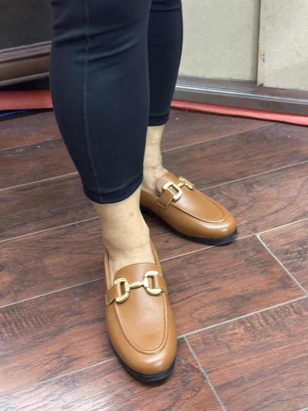 Just as described, these shoes are easy to slip on and off. They also are quite comfortable, and I really like the caramel brown color and gold ornamentation. I think they would be good walking shoes and I really like the bit of padding on the back where my heel slides in. My only hesitation is I debate if I am swapping a little bit of style for comfort. Regardless, I can see myself wearing these with my fall work wardrobe or slipping them on with jeans for weekend errands.