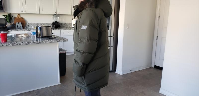 Great coat. Perfect for DC winter. Fur keeps snow drift out of your eyes and face. I sized down to SM and fits perfect for 5’9” 165lbs.