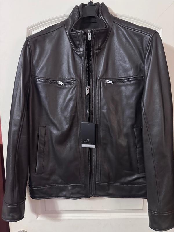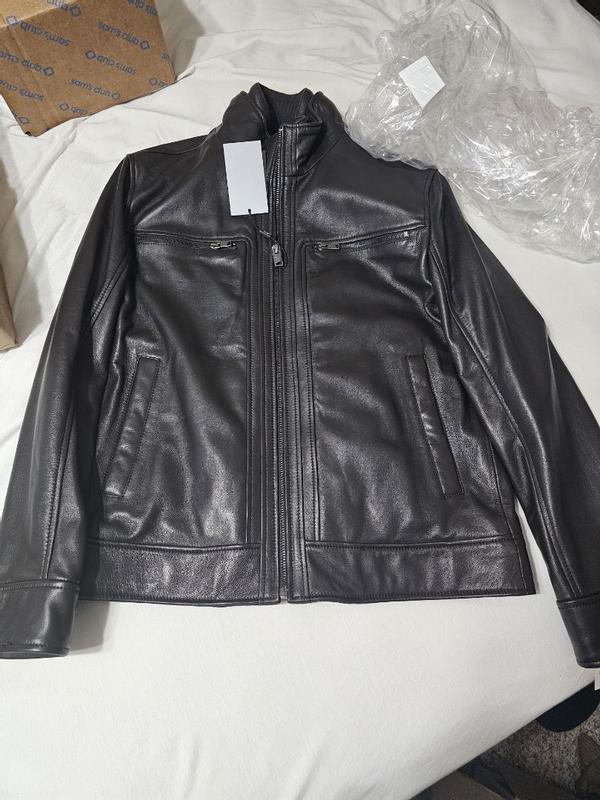 This jacket is awesome. It is a nice leather. The color is steadfast. I did notice a small cut in the front after the second wear, on the zipper piping. I don't know if I caused this or the zipper. Either way it appeared very easy to damage. The leather is probably very thin. It's warm and the double layer front is stylish. It's not SUPER warm though, if you are in a snow ridden state this is probably not enough.