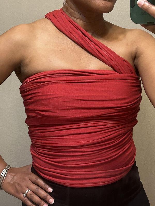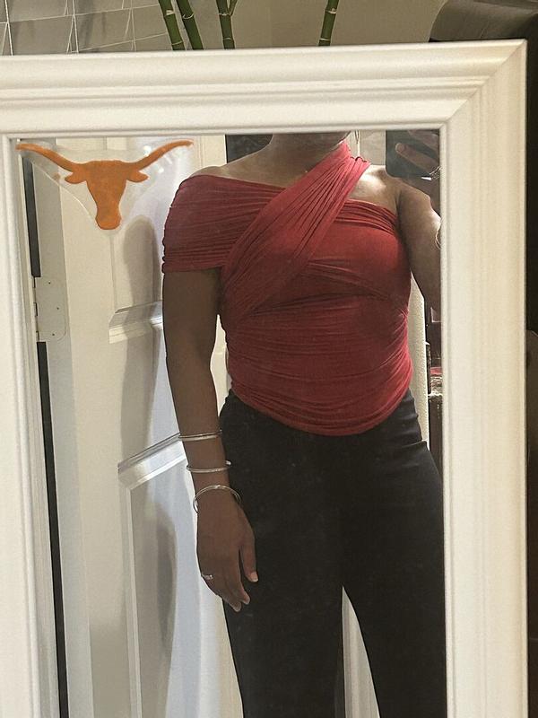 Love how versatile this top is. Worn twice and feel great and look great in it. Bought red and want to buy more colors.