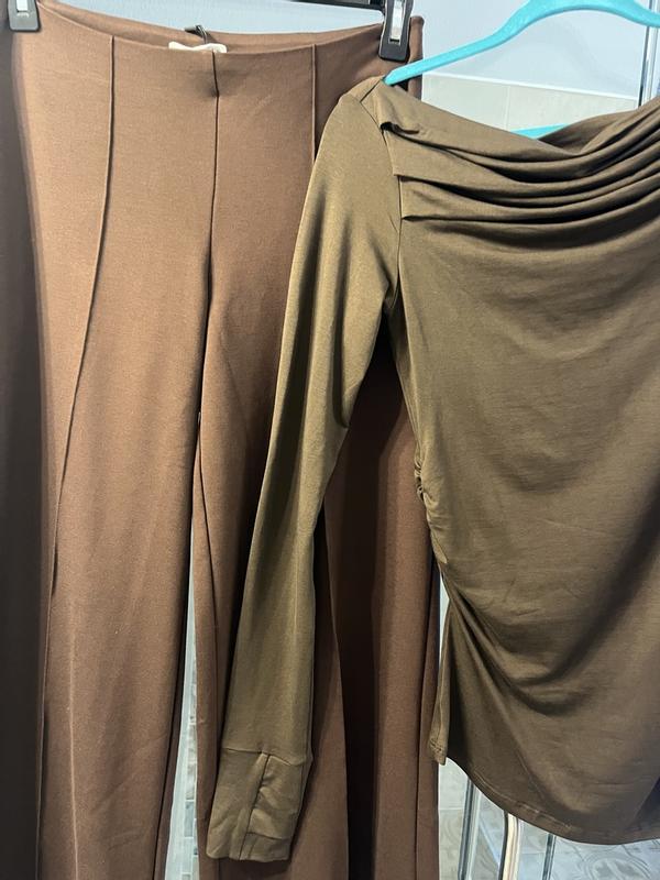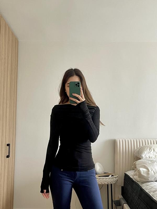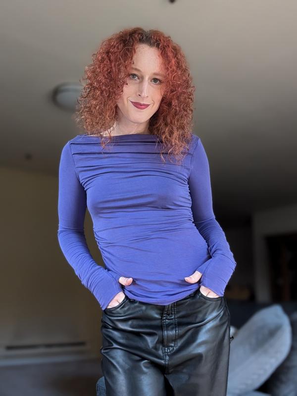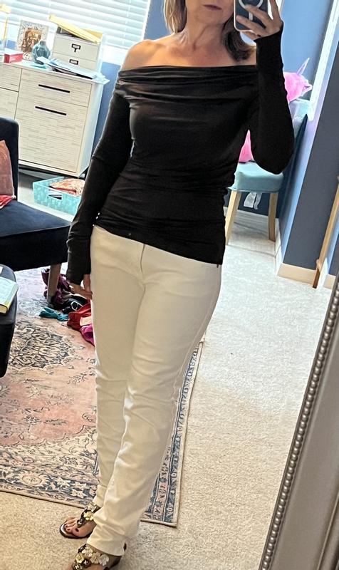 Love this top cuz it’s very chic and simple. I get tons of compliments and people asking where I got it. The materials very soft. It is a little lighter weight than I expected but still I adore it!