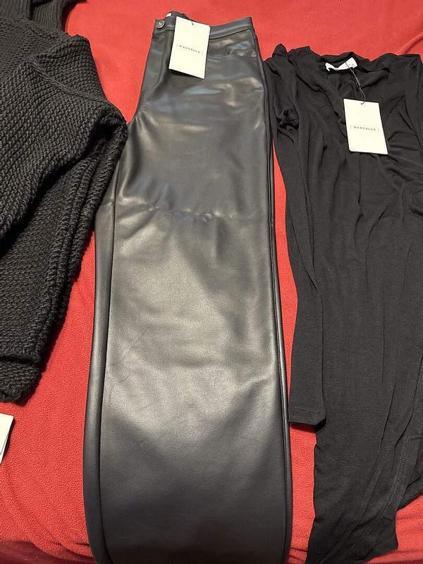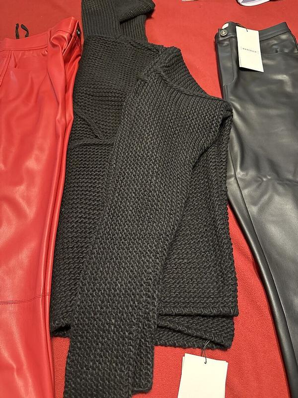 I ordered Julien Pants Red Ellison sweater black Morgan tunic black Karma boots Liza phone sling