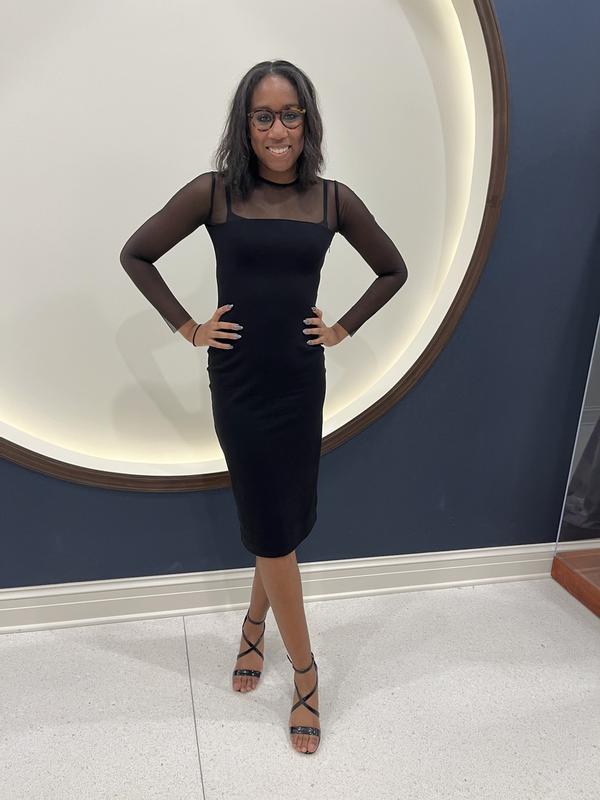 I ordered this dress for a company Christmas party and it was perfect! It fit like a glove and the material was nice and thick. I’m 113lbs and 5’1” so I had it hemmed a couple of inches bc I wanted it just below my knees. I can’t wait for an opportunity to wear it again. Love, love, love!