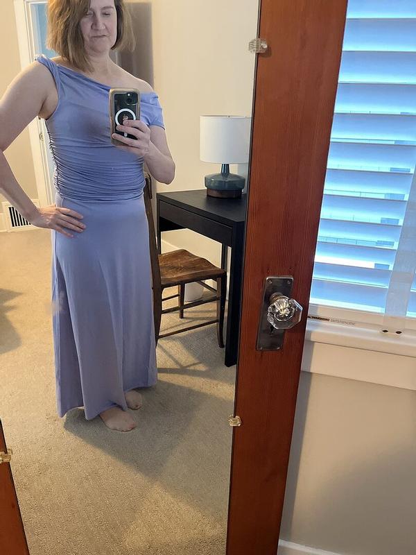 Beautiful color and fabric felt amazing but purchased for a summer wedding and returned as I did not like how my stomach looked and did not want to wear shapewear in the heat