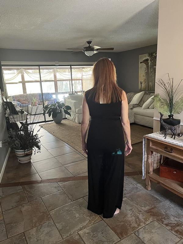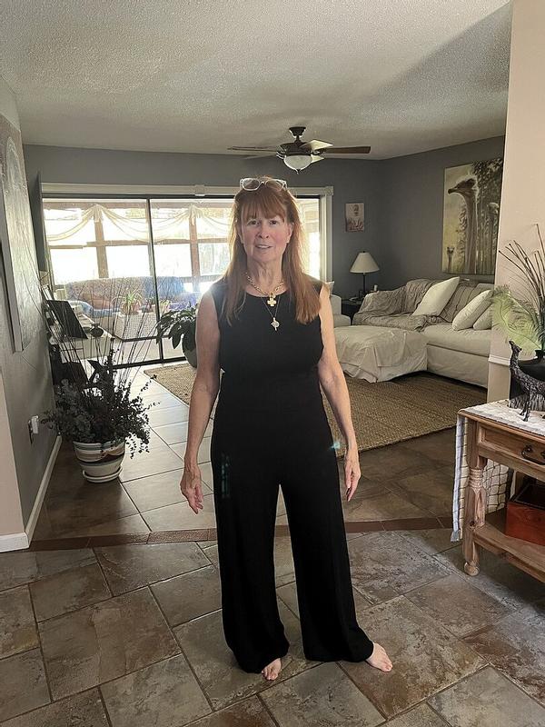 Cute jumpsuit but I would like 1-2 more inches in length to allow heels. I will keep because it is flattering and comfortable.