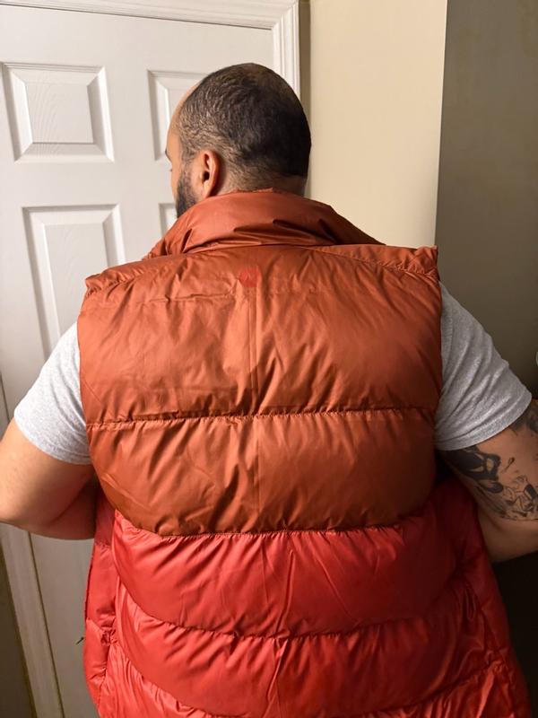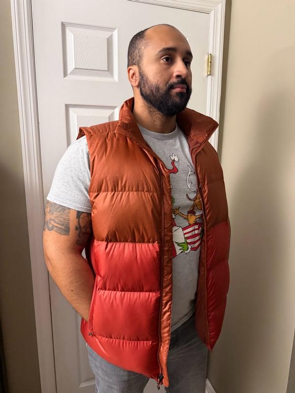 Marmot Men's Guides Down 2.0 Vest in that awesome orange color! The first thing I noticed was the amazing loft—super puffy but lightweight. The 700-fill down blend locks in heat immediately. The fit is perfect for layering a hoodie underneath. It's durable, packable, and the pockets are secure. Highly recommend for hiking, camping, or just everyday wear. Love this piece of winter gear!