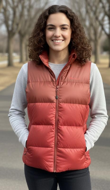 I absolutely love this Marmot sleeveless jacket! It’s lightweight yet surprisingly warm, making it perfect for layering or wearing on its own during cooler days. The fit is comfortable and flattering, and the quality is exactly what you’d expect from Marmot—durable, well-made, and stylish. Great for outdoor activities, travel, or everyday wear. Highly recommend