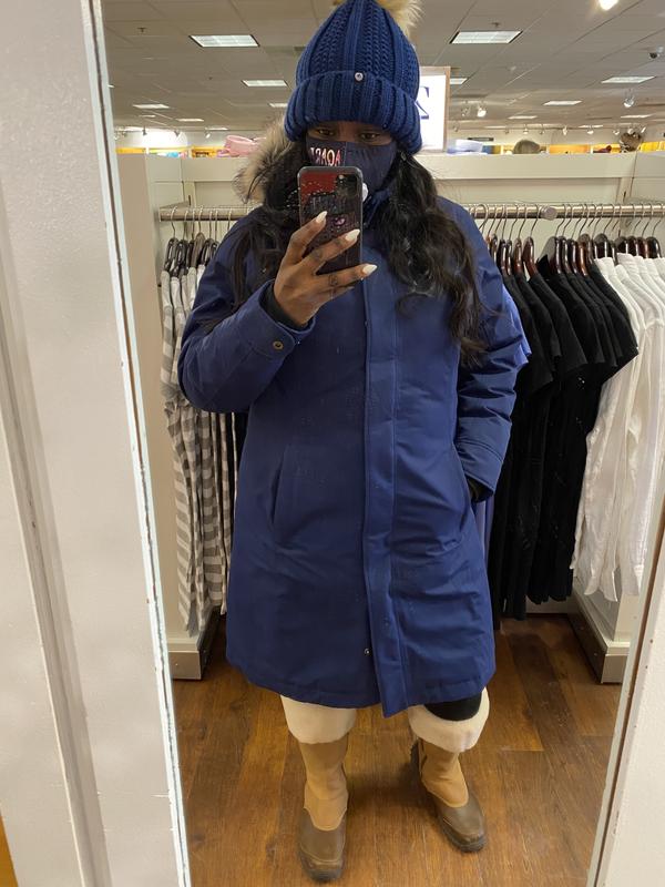 I love my army color Chelsea coat especially the fur hood it’s so warm and snug. I got the medium just the right fit if I’m not wearing a hoodie or other layered clothing