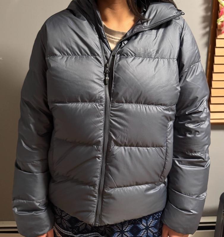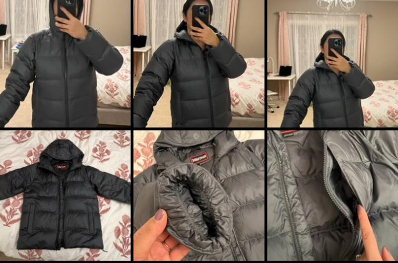 This Marmot down hoodie is literally my new favorite. It’s very lightweight and exceptionally warm and comfy. It has zippers on pockets that keep your small things safe, and it has strings on sleeves, and the hood, also lower bottom of the hoodie so it keeps you warm. You can pull the bottom strings so it will become a bomber hoodie. You can wear it to anywhere in the winter because it’s really wind proofing. I highly recommend it!