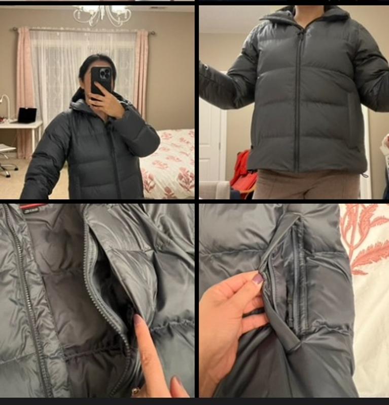 Love this jacket. It’s so light weight. Feels like I’m wearing nothing but so warm and cozy. Love that I can pull the strings on the bottom to custom my fit. Love the hood. Zoos smoothly and I can actually move in it lol