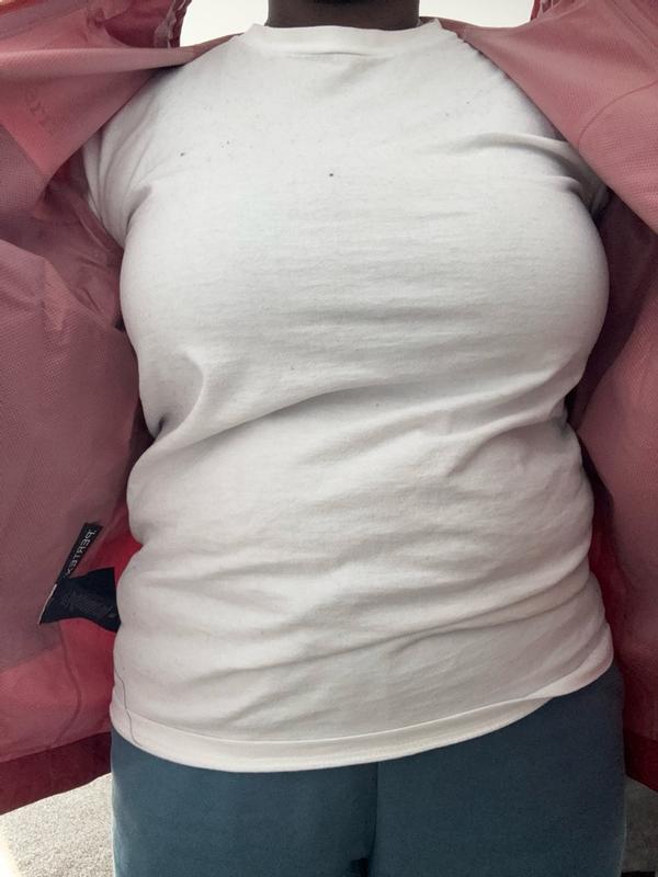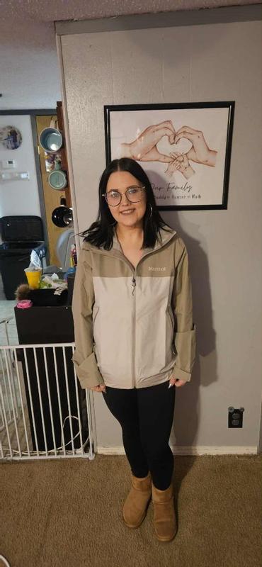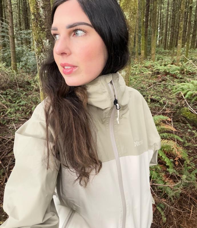 This Marmot women's minimalist Pertex rain jacket is great for any type of rainy weather. I received a large and it's big enough to wear a sweater underneath it without it looking or feeling too bulky. The hood is not too oversized to where it just flops in your face. It has enough pockets to put your keys or wallet in and very breathable.