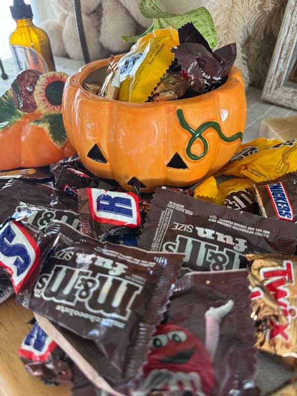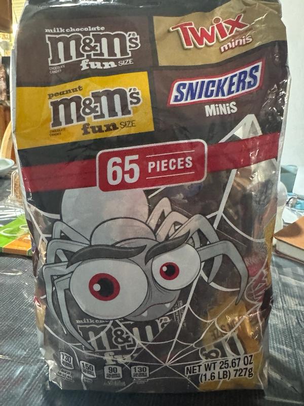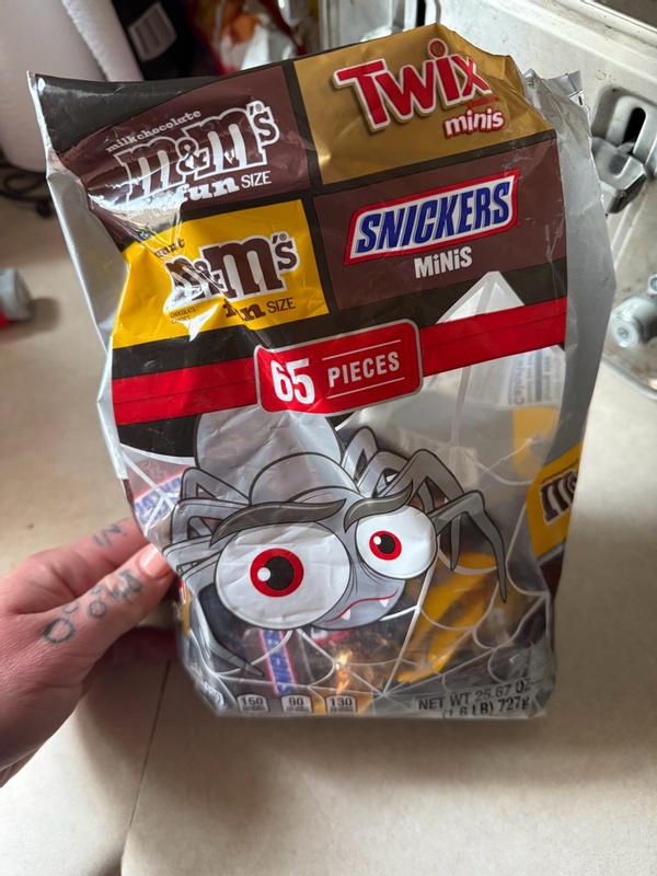 The M&M's, Snickers & Twix Halloween Candy Variety Pack is a delightful treat for the spooky season! With 65 pieces in a single bag, it's perfect for trick-or-treaters or for satisfying your own sweet tooth. The assortment offers a great mix of classic favorites. M&M's provide that satisfying crunch and smooth chocolate, while Snickers delivers a satisfying combination of nougat, caramel, and peanuts. Twix brings a delightful blend of cookie and caramel, making it hard to choose a favorite. The packaging is festive, making it an attractive addition to any Halloween spread. The variety ensures that there’s something for everyone, whether you're a chocolate lover or prefer a nutty texture. Overall, this variety pack is a fantastic choice for Halloween festivities or just for indulging in some nostalgic candy. It's a fun way to experience a mix of iconic treats in one convenient bag! Yummy!