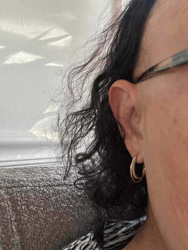 Diamond & Polished Double Oval Hoop Earrings (1/4 ct. t.w.) in Sterling Silver & 14k Gold-Plate