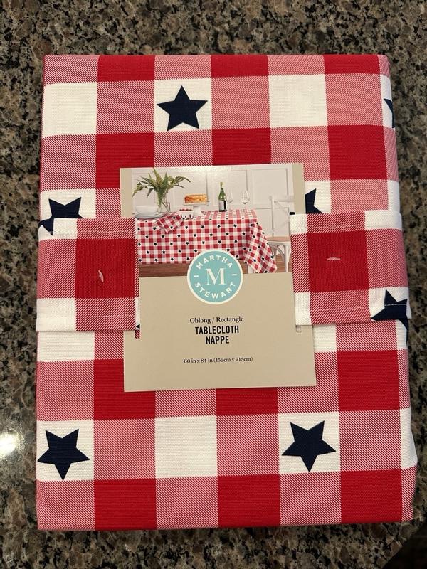 I received this item complimentary from Martha Stewart and Influenster in exchange for my honest review. This bright red and white checkered tablecloth would be perfect for a picnic. The added color of the blue stars make it even more appealing for the summer months. This tablecloth is a bit thin but the fabric seems sturdy. I did not order the right size as it barely fit our table butcher it’ll be perfect for a picnic table. I don’t know if I would purchase it but it sure does get your attention.